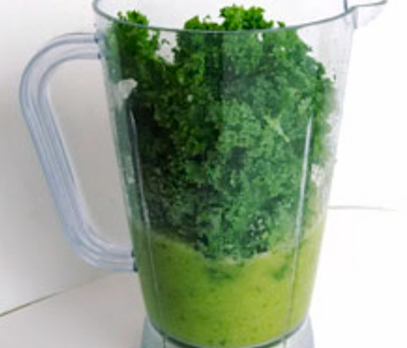 - Add kale leaves and lemon juice into the blended mixture in the blender