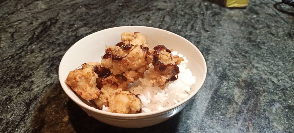 - Place the battered chicken into hot oil, one by one to prevent them sticking together