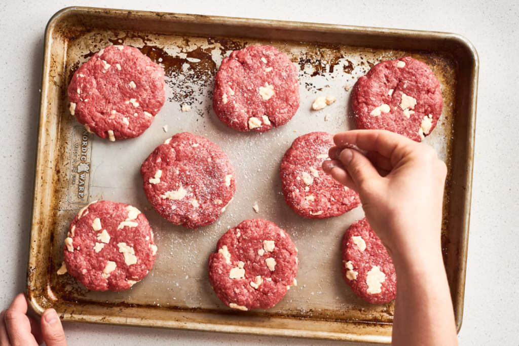 - Shape the burger into patties about 4 inches / 10 cm in diameter.