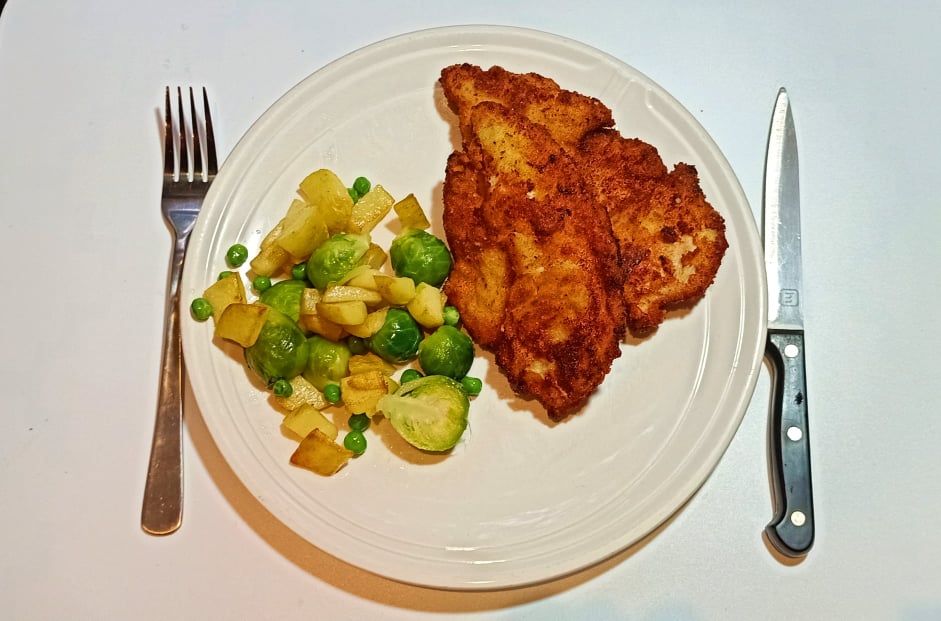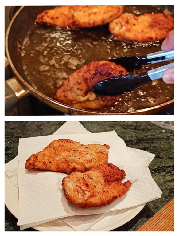 - Place the schnitzel on paper towels to soak up excess oil
