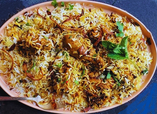 Serve chicken biryani with raita (yoghurt sauce) or a side dish of your choice