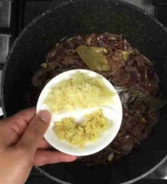 Heat 2 tbsp. of ghee in a large pot. Add a handful of sliced onions