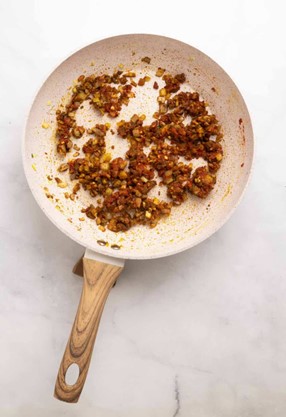 - Add the spices, tomato paste and salt, then stir to combine. Cook for 30 seconds, until fragrant.