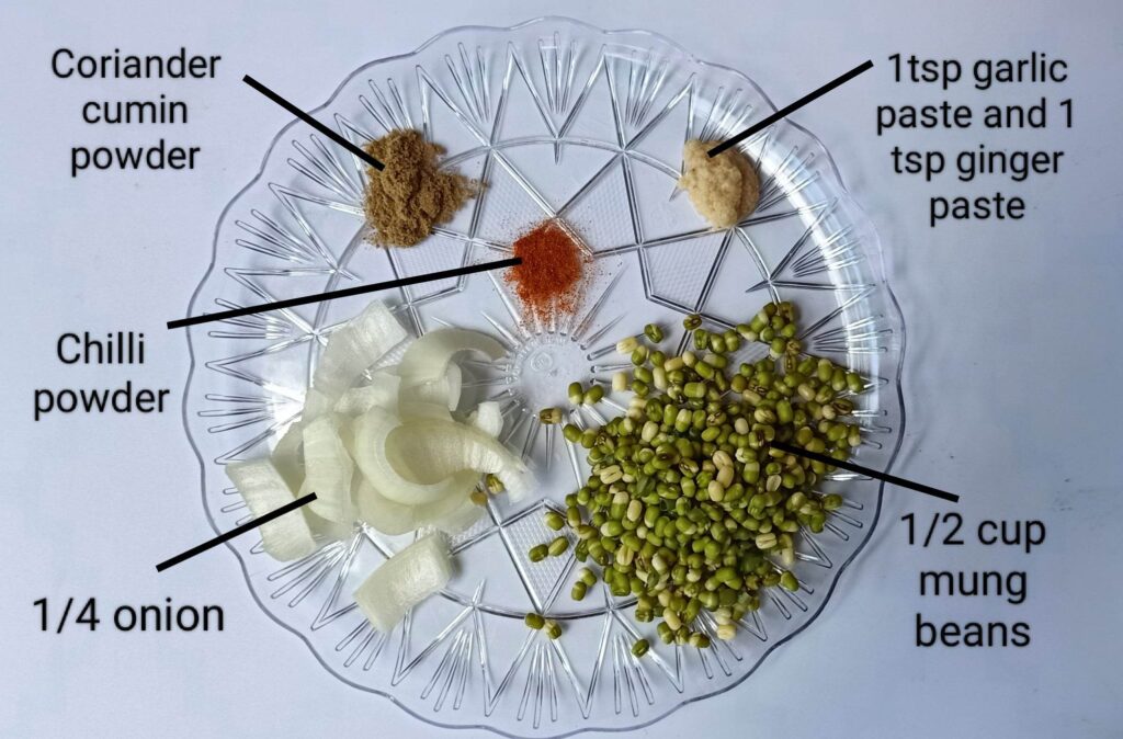 - Cook the mung beans in a pressure cooker, or alternatively soak for 2-3 hours in warm water and then boil on stove top